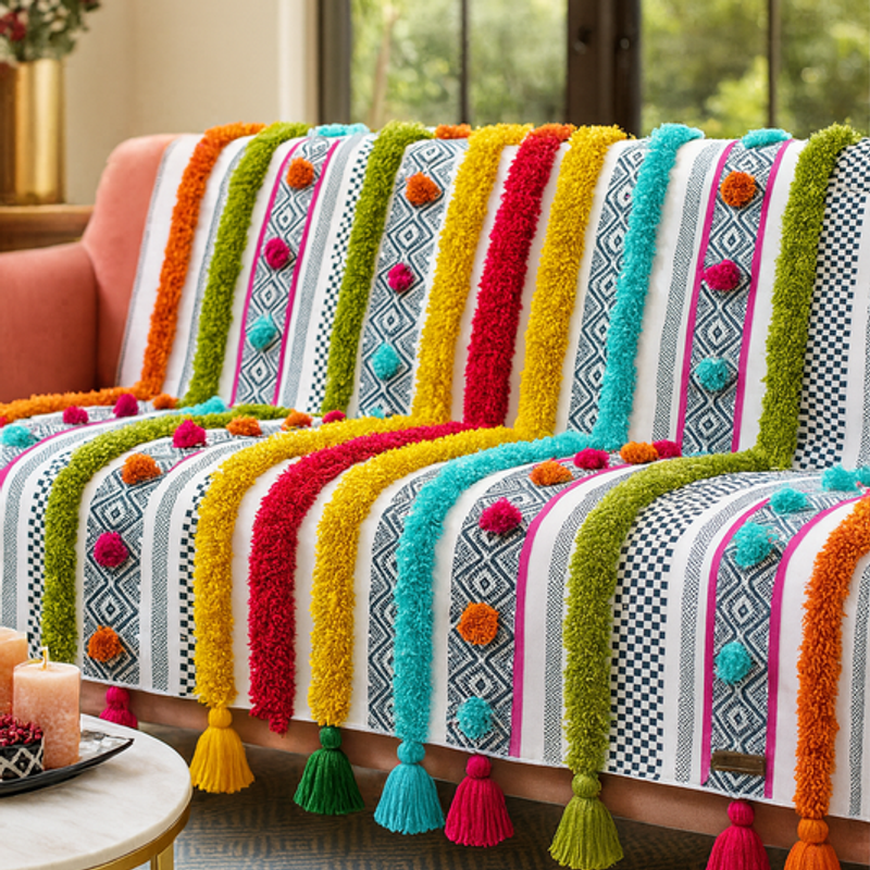 Option 1: Add Removable Tassels: This option lets the user include tassels on the sofa cover that can be easily removed.