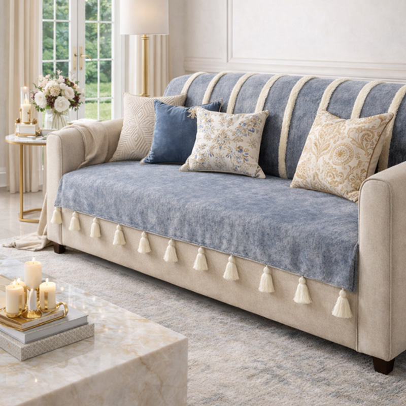Option 2: Add Non-Removable Tassels: Choosing this means adding tassels to the sofa cover that cannot be taken off.