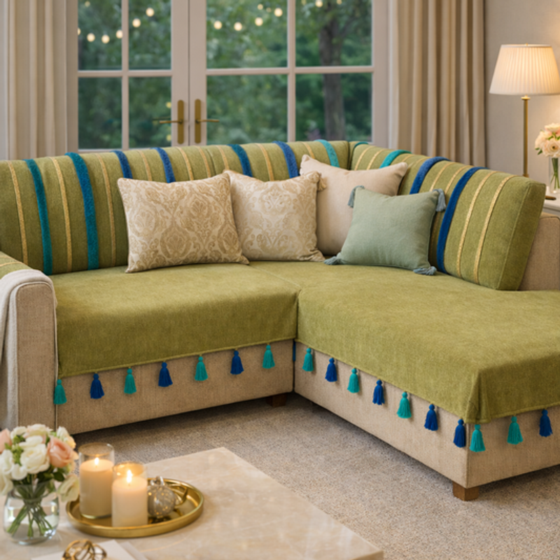 Festive Decor and Gift Idea: Our covers are not just practical—they're stylish too! With their vibrant colours and elegant tassels, they are ideal for Diwali decor or as a thoughtful gift for festive occasions. Imagine gifting a beautiful solid tassel sofa cover that complements a loved one's home and brings joy during the festivities!