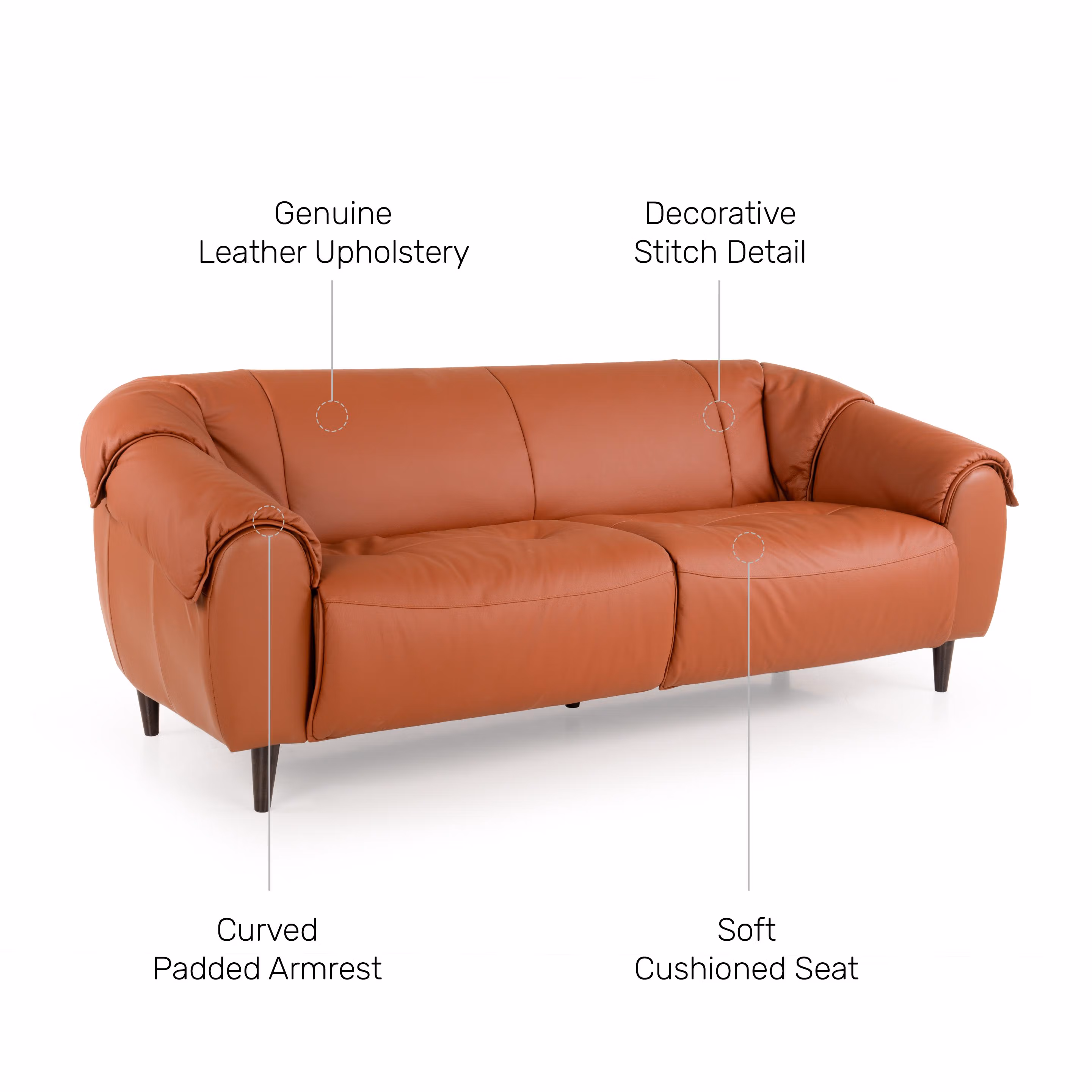 If you want a leather sofa that balances comfort, durability, and price, this is the one. It’s marketed toward modern Indian homes, and it shows. The silhouette is clean, the cushioning is supportive, and the leatherette finish makes it easy to live with.